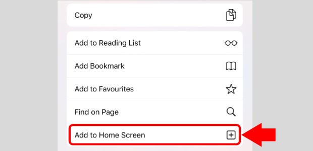 2. Select Add to Home screen